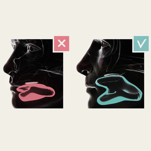 You put the Mewing Ring onto your tongue, seal your lips and start to swallow your spit, which will create a vacuum that automatically moves your tongue with the Mewing Ring towards the top of your mouth.